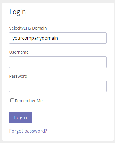 Your company’s unique URL includes your company domain name. Your company’s domain is typically part of your email address after the @ sign and before the .com/.org/.gov/etc. For example, [email protected] would use test.accelerate.ehs.com. If you are not sure of your company domain, please contact your administrator.