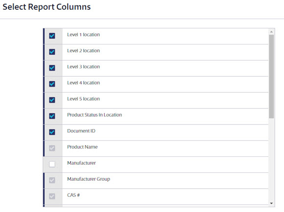 Once you’ve selected which products to include on the report, choose the data that you would like to appear in the report columns for each container.