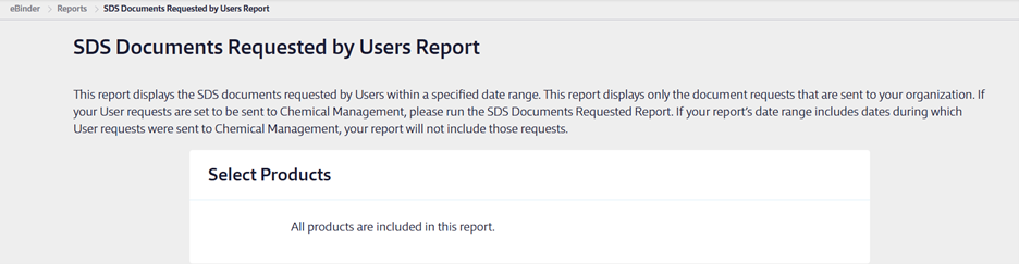 SDS Documents Requested by Users Report is only available for SDS Management and Chemical Management accounts.