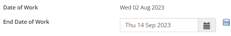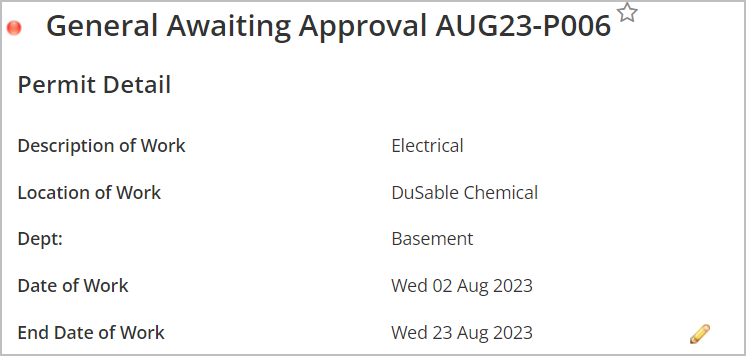 To extend a permit, select the pencil icon next to the End Date field on the permit details page and enter a new date.