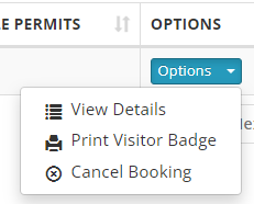 The Options button, in the Options column for each visitor, provides the following: