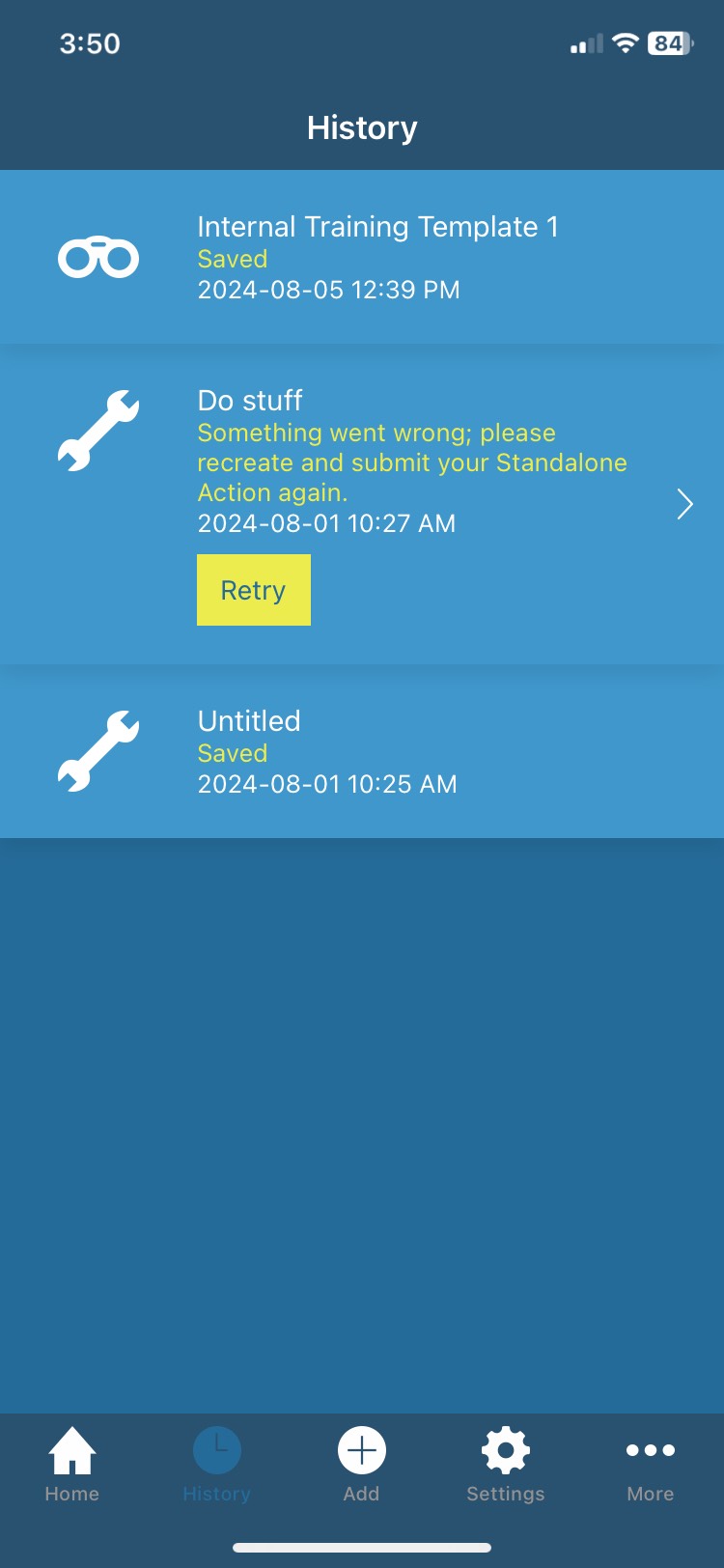 After logging in, the home screen displays your to-dos that you can complete in the mobile app. At the bottom, you’ll see the navigation bar, which includes the following options: