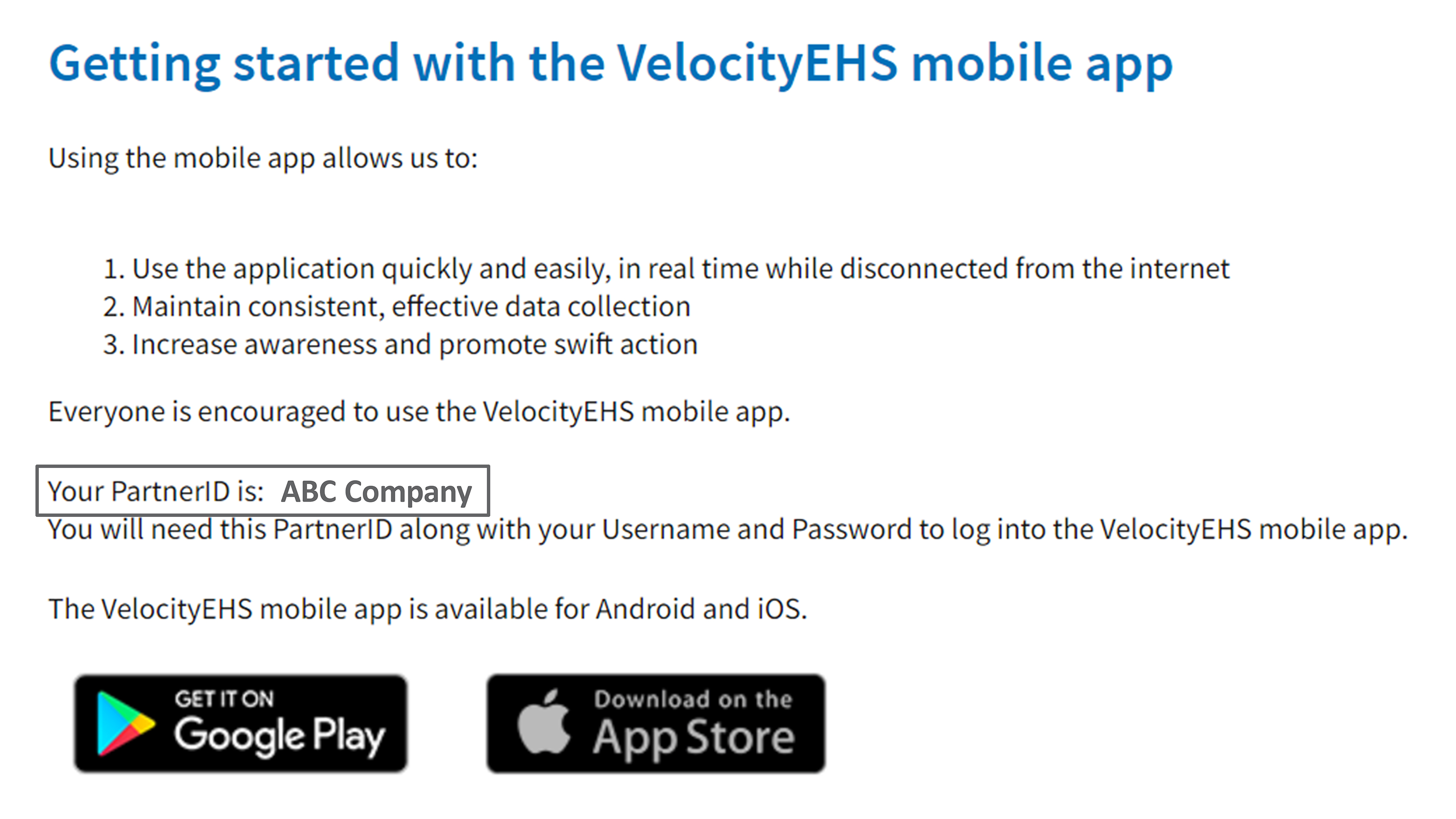 To access the app, you’ll need your username, password, and your company’s Partner ID. Follow these steps to find your Partner ID: