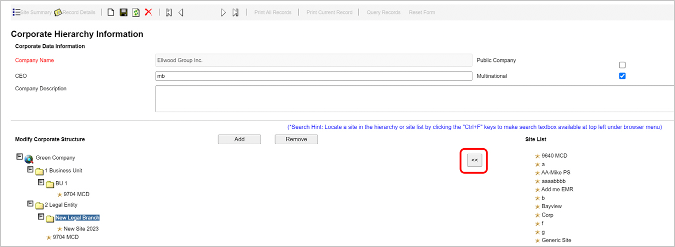 Add a Location Site to the Location Tree (Corporate Hierarchy)