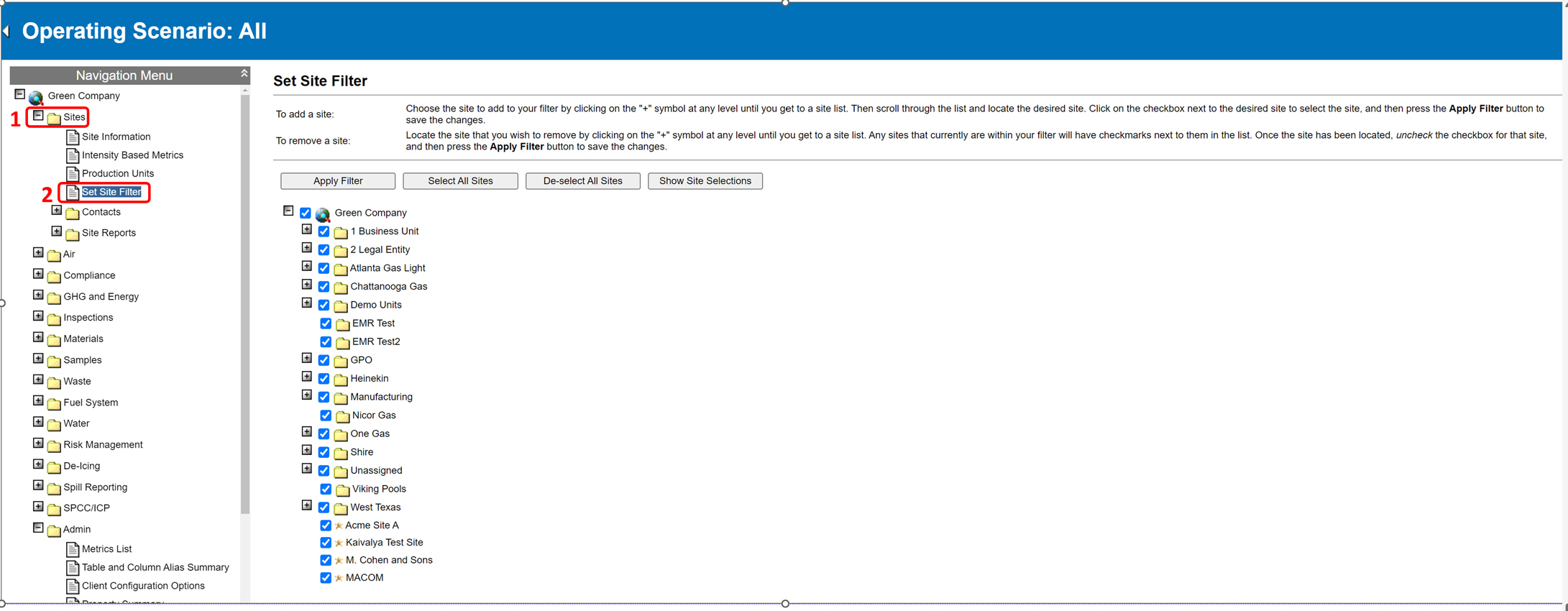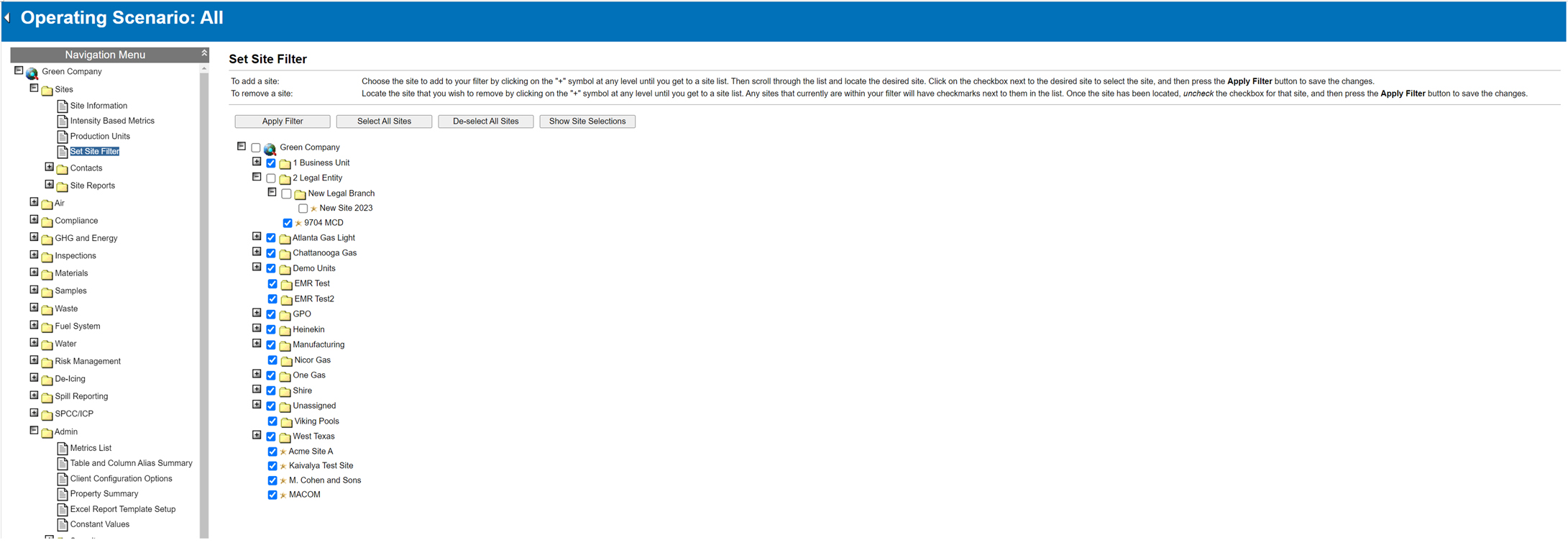 For users with access to multiple locations, the Set Site Filter function offers a powerful tool to streamline your focus. This feature enables you to narrow your view to a specific site, allowing for concentrated data analysis and report editing. This site filter maintains its effect, extending beyond logouts until you opt to reset it, ensuring convenience and efficiency in managing your data interactions.