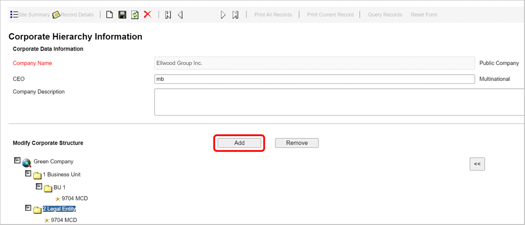 Add a Location Node to the Location Tree (Corporate Hierarchy)