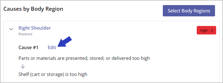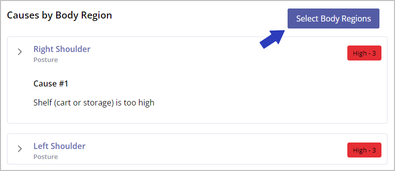 There may be multiple direct causes that result in elevated force or posture risk for a body region. To add more, select Add Another Cause below the last cause listed for a body region.