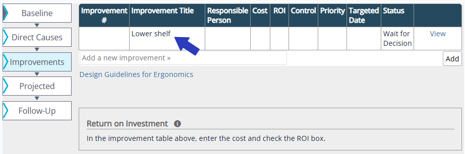Note: If you selected a “built-in” control during the Direct Causes phase, the Improvement Title cannot be edited.