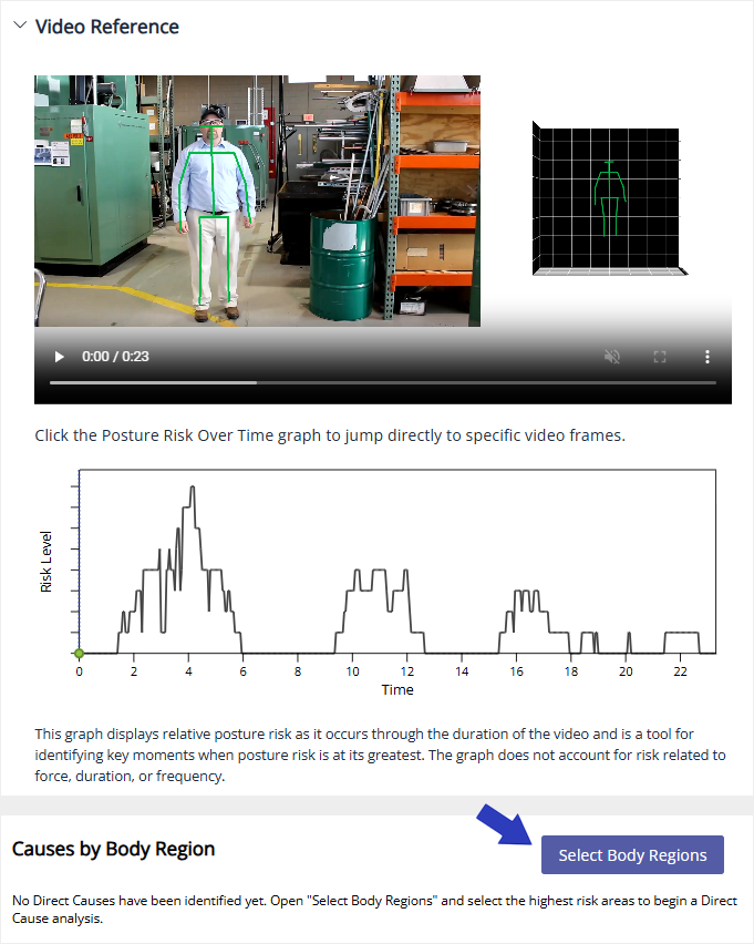 When you have an Advanced Whole-Body Assessment for which you’ve already completed the Baseline phase (the video has been processed and you’ve added force data, resulting in a Risk Priority Score), you’re ready to move on to the next phase, Direct Causes.
