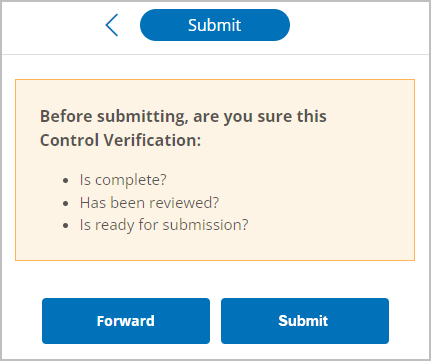 When all required information for a verification activity is complete, you can submit the verification activity. You’ll see a message letting you know it’s been submitted successfully. All actions raised as part of this verification activity will be automatically sent out.